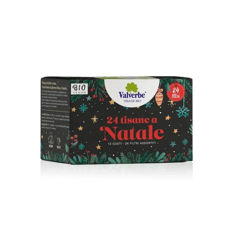 Vivi la magia dell’attesa con il Mini Calendario dell’Avvento Valverbe: 24 tisane biologiche, una per ogni giorno fino a Natale. Ogni filtro è realizzato con erbe fresche, biologiche e senza OGM, essiccate naturalmente e confezionate in filtri a doppio incarto senza colla né punti metallici.