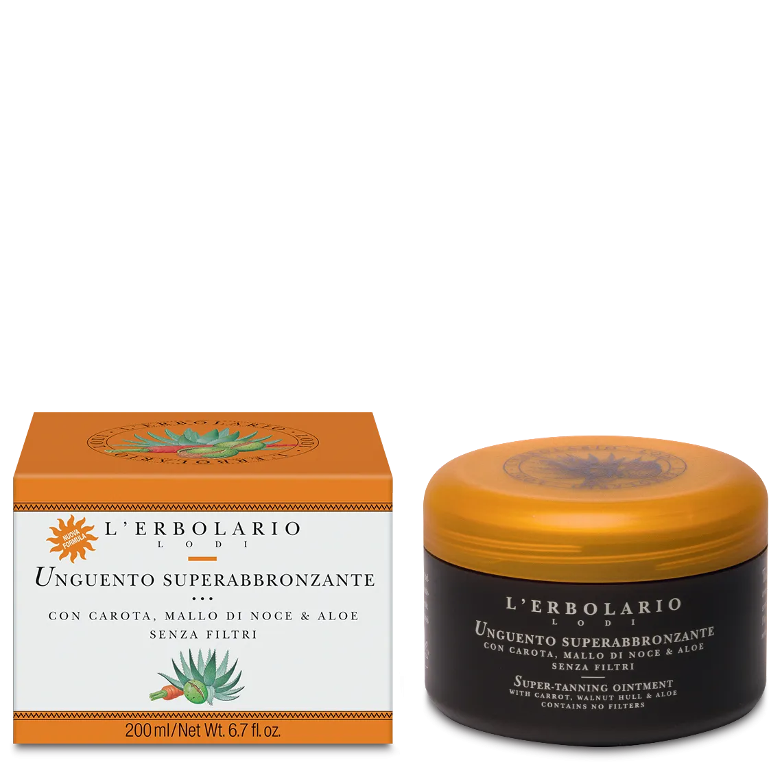L’Unguento Superabbronzante per il corpo è dedicato a chi ha una pelle ambrata e robusta, naturalmente amica del sole. Senza filtri solari, è comunque ricco di elementi nutrienti ed addolcenti per assicurare comfort e splendore alla pelle, durante e dopo l’esposizione. Stendetelo uniformemente sul corpo e massaggiatelo delicatamente: la pelle risulterà immediatamente morbida, satinata, lucente, mentre la sua tonalità di colore sarà sottolineata ed esaltata dalla presenza dell’Estratto di Mallo di Noce e dall’Olio di Carota.